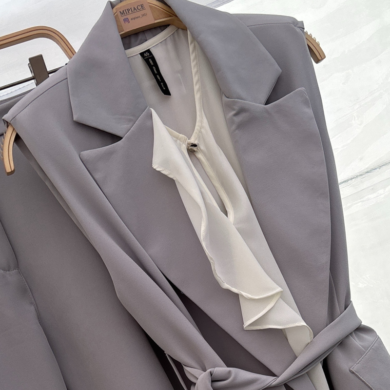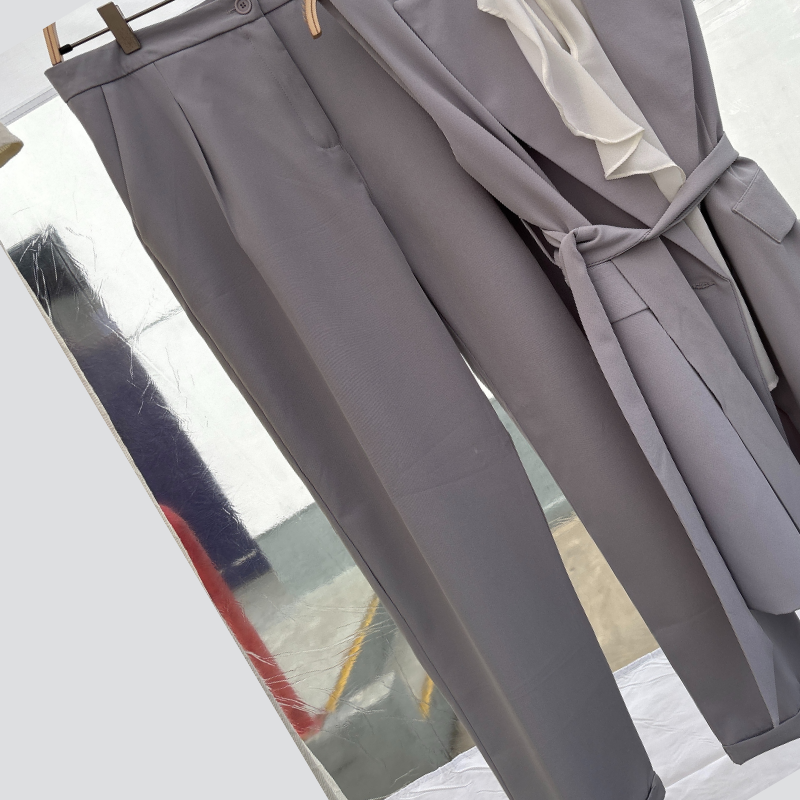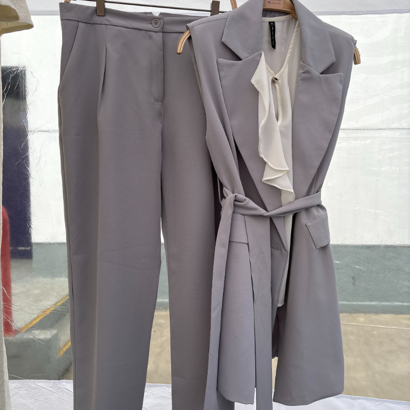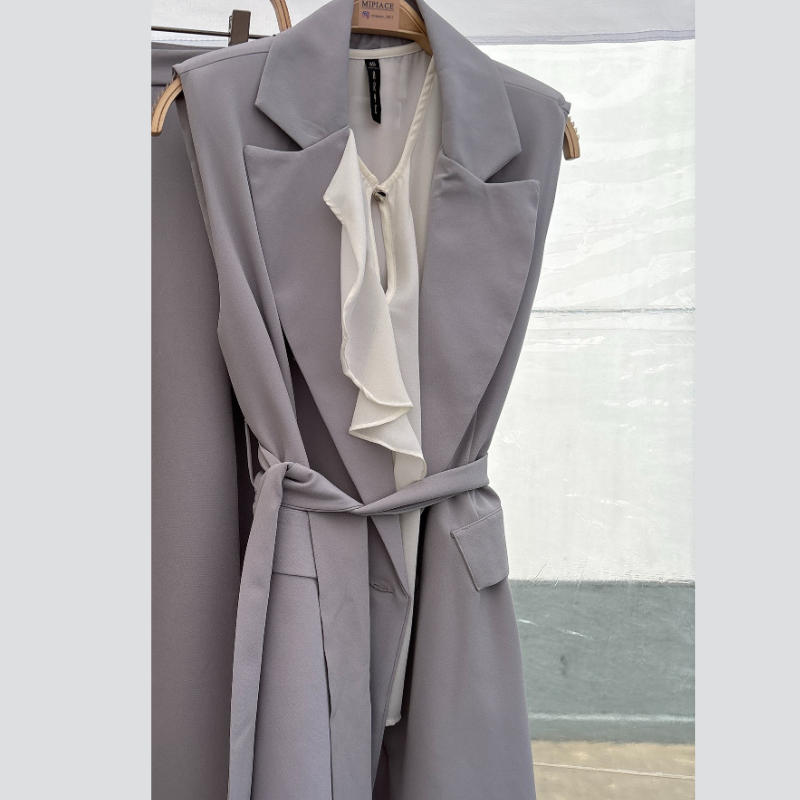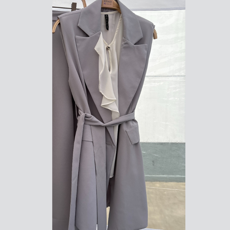 Chaleco largo con lazo + pantalón sastrero con caída perfecta.