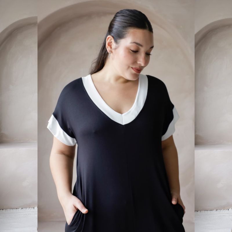 Mono amplio de líneas limpias y corte relajado, confeccionado en viscosa elastizada premium que aporta suavidad, frescura y movimiento. Un básico elegante y cómodo, ideal para todo tipo de cuerpo.