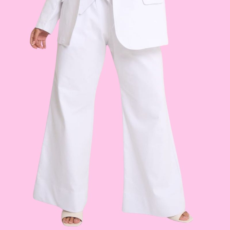 Pantalón de gabardina elastizada multitalle – Color disponible en Blanco y en Azúl.