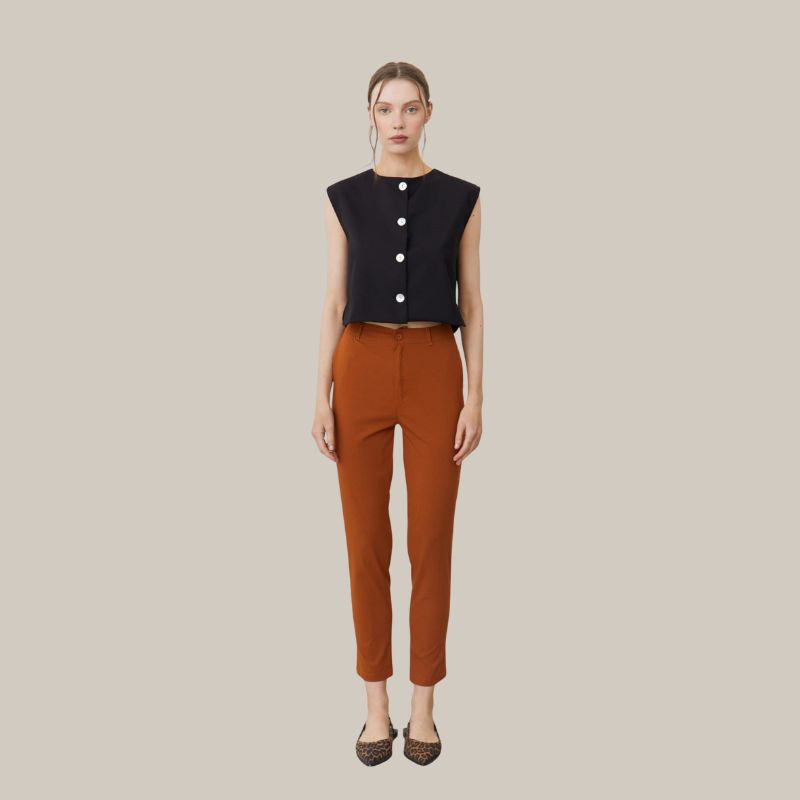 Pantalón poplin elastizado Terracota.